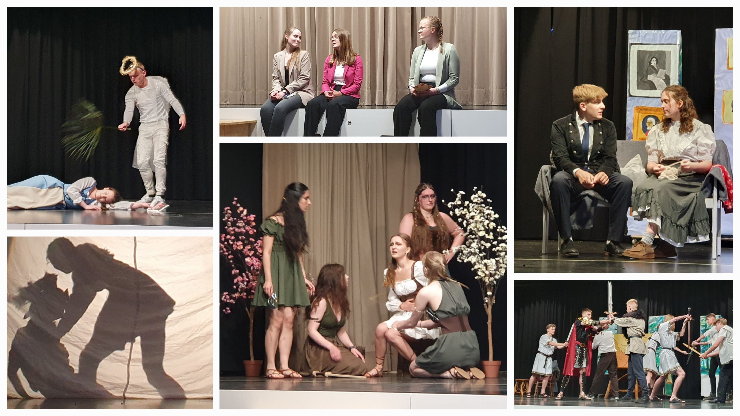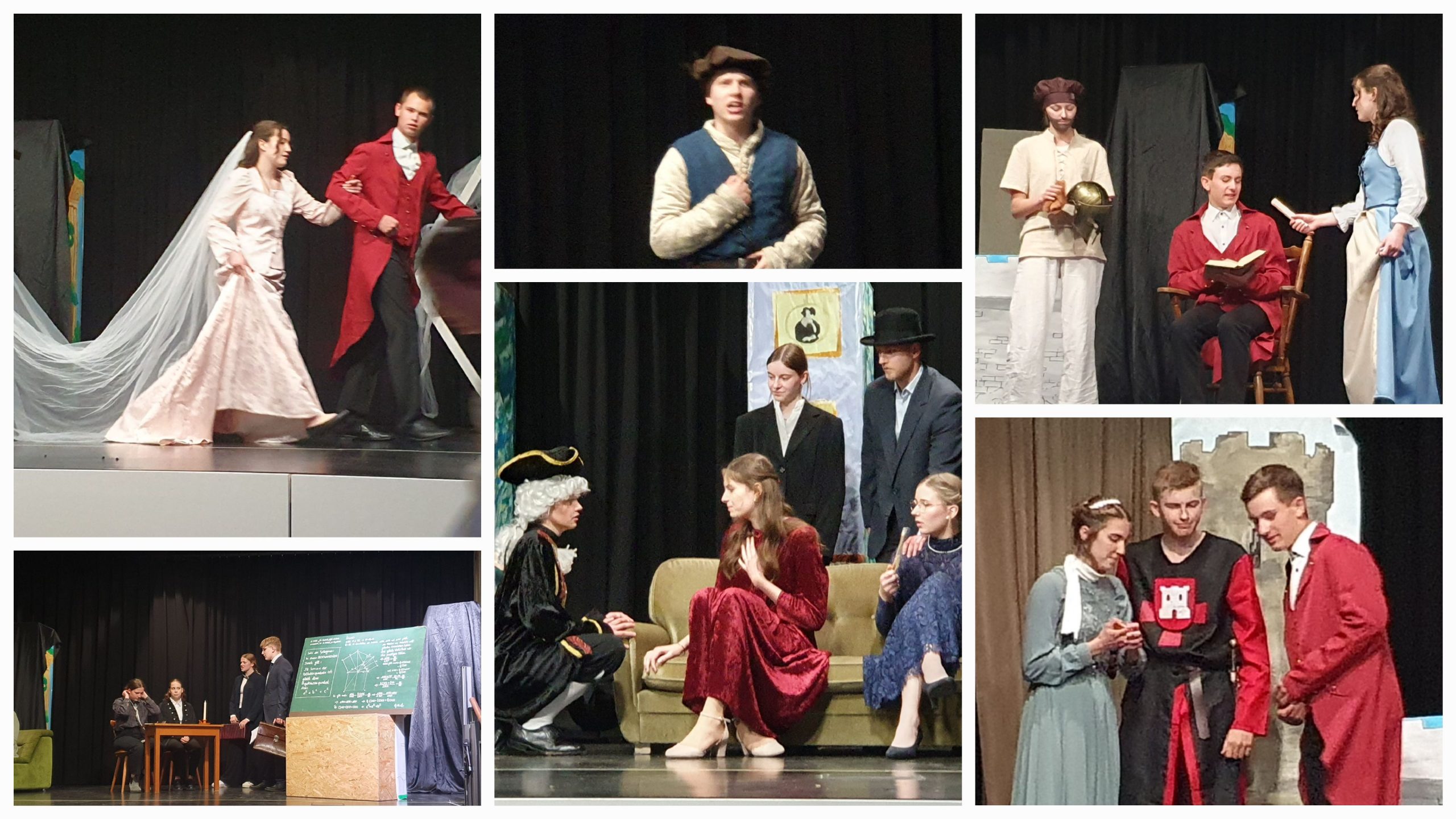 Hemmoor. Der Einladung des 12. Jahrgangs des Gymnasiums Warstade zum Theaterstück „Die Vergangenheit spricht…“ folgten viele Besucher. Die Premiere am Freitag, 23. Mai, war sehr gut besucht und auch bei den beiden anderen Aufführungen am Montag und Dienstag kamen zahlreiche Zuschauer. In dem Theaterstück, das die Schülerinnen und Schüler mehrere Monate alleine entwickelt haben, stand das Leben und die Stücke des Autoren Heinrich von Kleist im Vordergrund. In der neuen Talkshow „Die Vergangenheit spricht…“ empfing Gastgeberin Kati (gespielt von Tamina Umland) die zwei Expertinnen Tessa König (gespielt von Amelie Rutzen) und Freya Schwarz (gespielt von Stella Bolls), die mit ihrem Wissen über Kleist die Zuschauer beeindruckten. Neben seinen einzigartigen Stücken stand vor allem auch sein Leben im Vordergrund. Zwischen seinem Militärdienst und seiner Verlobung versuchte Kleist in seinen Werken Zuflucht zu finden, in denen er jedoch auch nur seine negativen Gedanken ausdrückte. Diese Stücke wurden in der Talkshow zum Leben erweckt, sodass die Zuschauer einen bunten Einblick in die verschiedenen Bereiche seiner Werke bekamen. Sei es eine Geschichte wie Romeo und Julia in „Die Familie Schroffenstein“ oder einfach eine ganz einzigartige Geschichte über die Liebe in „Das Käthchen von Heilbronn“. Kleist hat allerdings nicht nur Stücke geschrieben, die das Thema Liebe thematisieren. In „Die Hermannsschlacht“ geht es um den historischen Widerstand der Germanen gegen die Römer, eine Darstellung der historischen Varusschlacht.