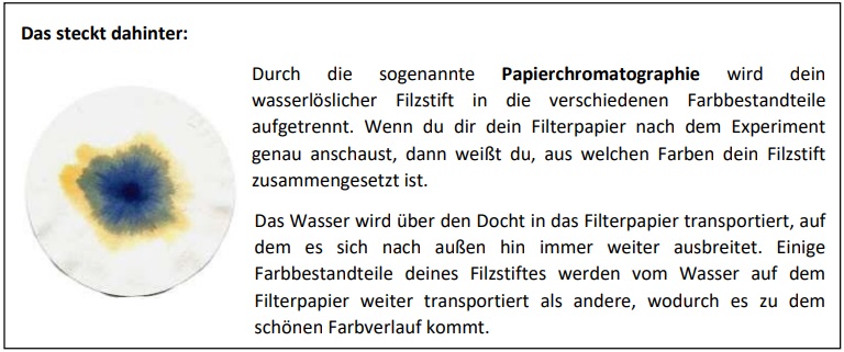 - Wenn du magst, kannst du das Experiment gerne mit verschiedenen Filzstiften wiederholen.