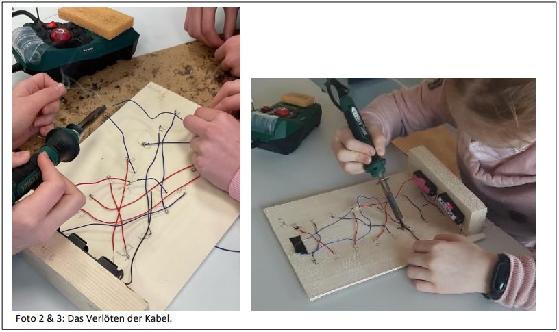 Ein Thema, dass in der 5. Klasse unterrichtet wird, ist die Elektrizitätslehre. Neben vielen Schüler- und Demonstrationsversuchen fertigen die Schüler:innen auch ihr eigenes Elektro-Quiz an.
