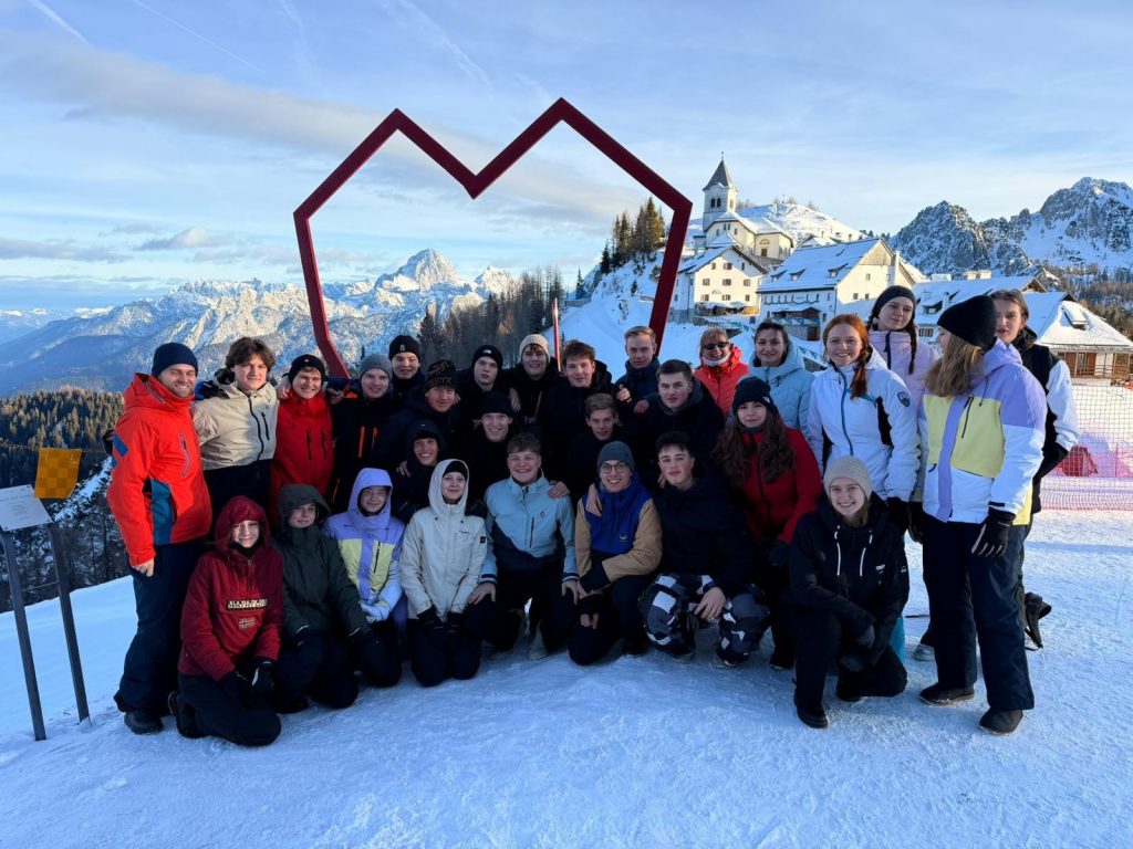 Es war einmal … ein Skikurs mit vielen Überraschungen. Beginnen wir chronologisch mit dem COOPER-Test, der als Auswahlverfahren darüber bestimmt, wer am Skikurs teilnehmen darf, und vor den Sommerferien 2025 stattfand. Demzufolge nahmen ab August 27 Schülerinnen und Schüler am Theorieunterricht teil, in dem bis zu den Herbstferien Grundkenntnisse zur Materialkunde, zu alpinen Gefahren, zur Lawinenkunde (Lawinenarten und Verhalten) sowie zu den FIS-Regeln vermittelt wurden. Danach folgte ein wöchentliches Konditionstraining, das von den Schülerinnen und Schülern vorbereitet und durchgeführt wurde. Hierbei kristallisierte sich bereits die Grundstimmung des Kurses heraus: Wir wollen Spaß und freuen uns riesig auf’s Skifahren😊. Die Abreise bescherte uns dann die erste Überraschung: Ein heftiger Wintereinbruch zwang uns dazu, die Abfahrt vom Abend des 9. Januar auf 5 Uhr morgens am 10. Januar zu verschieben. Dennoch waren die Straßenverhältnisse teilweise katastrophal, aber wir sind nach 17 Stunden dank unserer sehr guten Busfahrer heil und sicher am Forellenhof in Ledenitzen/Österreich angekommen. Ein neuer Koch und ein tolles Hoefer-Team haben uns einen sehr schönen Aufenthalt bereitet. Die nächste Überraschung war der erste Skitag, der nicht wie gewohnt in Klösterle, sondern in Tarvisio/Italien stattfand. Hier hatten die Anfänger beste Bedingungen und auch das Wetter spielte mit😊. Die Fortgeschrittenen halfen uns beim Anfängerunterricht und bekamen im Anschluss Zusatzfahrten, erst mit meinem Kollegen Marten Brandt und am Nachmittag fuhren noch einige mit mir zwei Pisten und wir hatten großen Spaß😊 Kurz vor dem Ende der zweiten Abfahrt wartete dann eine ganz besondere Überraschung auf mich. Eine im Schatten liegende und ungesicherte „Schneekante“ (Abgrenzung zu einer Sesselliftauffahrt) habe ich durch meine dunkle Sonnenbrille nicht wahrnehmen können, demzufolge sie mich frontal ausgeklinkt hat und ich nach 52 unfallfreien Jahren auf den Skiern einen kapitalen Sturz hingelegt habe, bei dessen Schwere ich mir „nur“ das Schlüsselbein gebrochen habe. Damit war der Skikurs für mich beendet, aber Herr Brandt und Frau Dr. Korte haben mit Unterstützung der Hoefer-Skilehrer und mit tollem Engagement die restliche Skiwoche zu einem vollen Erfolg gemacht. EIN GROSSES DANKESCHÖN!!!